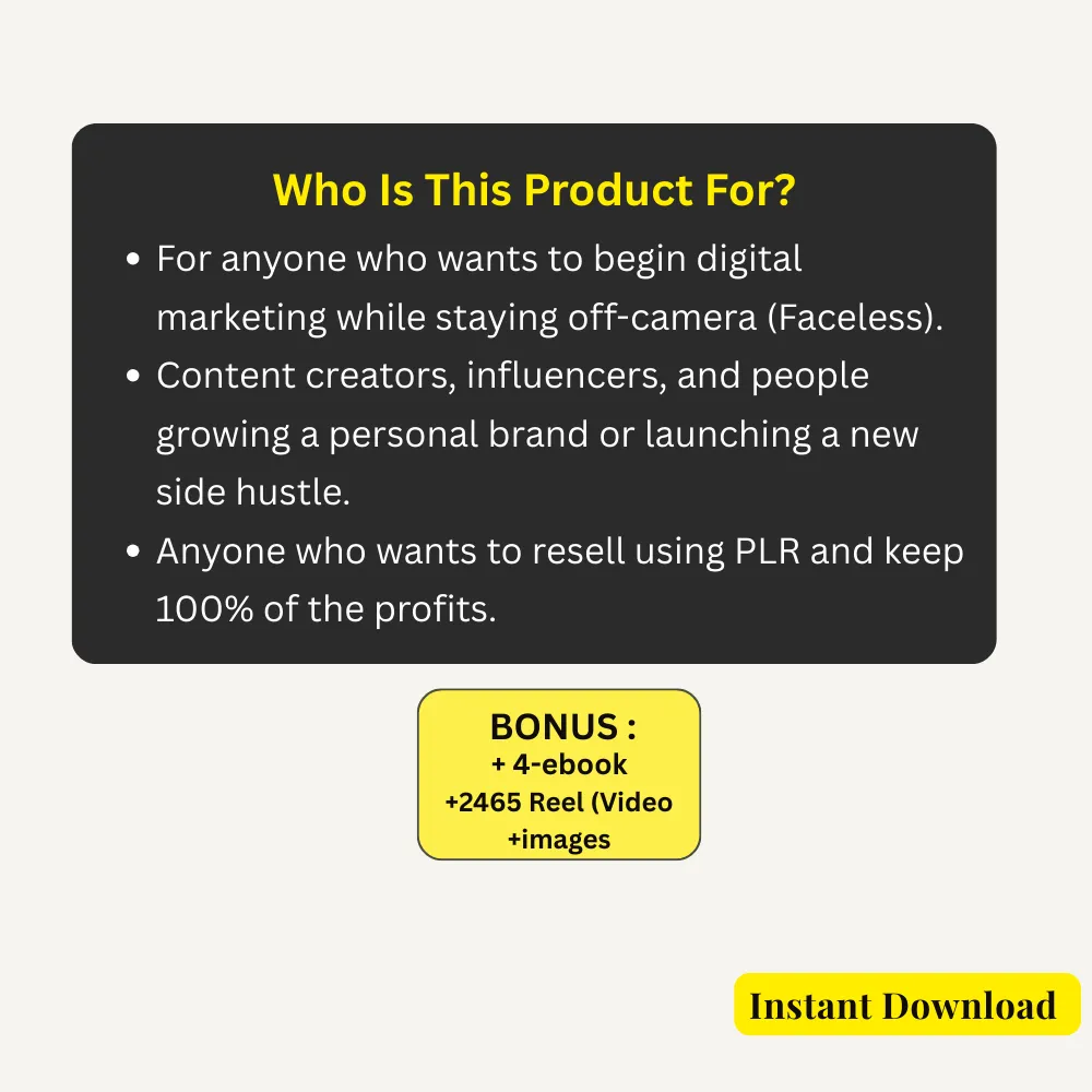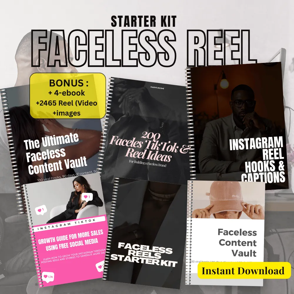 No. The entire kit is built around faceless content—screen recordings, over-the-shoulder shots, b-roll, simple text reels, and voice-over concepts. You can optionally appear on camera, but it’s not required.